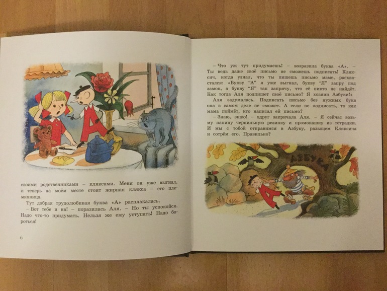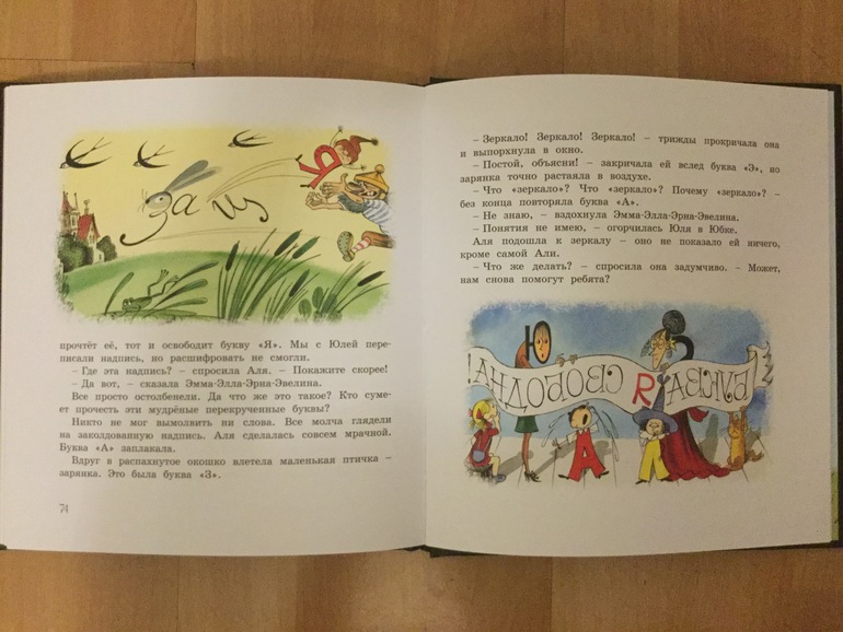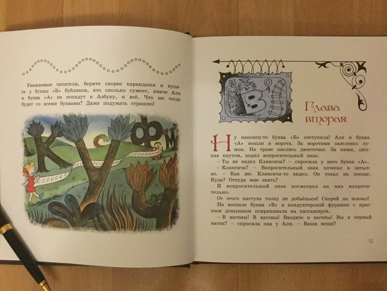 отзывыПопросили меня написать про эту книгу и показать развороты. Сама я эту книжку в детстве не читала и вот быстренько так ознакомилась. Читать взрослому эту книжку подряд, прямо скажем, немного скучновато - это по сути завуалированная азбука. Но если у взрослого есть желание заинтересовать ребёнка изучением или повторением букв в игровой форме, то при увлечённом чтении вслух ребёнку, думаю такой книжкой можно очень даже заинтересовать 5-6летку. С другой стороны мы уже настолько избалованы сейчас количеством различных игровых пособий на тему изучения букв, всякими прописями-невидимками и т.п., что то, что деткам в 1967 году в этой книжке казалось крайне увлекательным и занимательным, сейчас может некоторым показаться обыденным. У меня, например, по прочтении возник вопрос - почему к книжке нет рабочей тетради - в конце каждой главы дано мини задание, чтобы помочь героям книги, где их писать? Конечно в самой книге не положено - в книгах не пишут, но и просто в блокноте на отдельном листе - по современным реалиям тоже уже не так "романтично". Развороты под катом