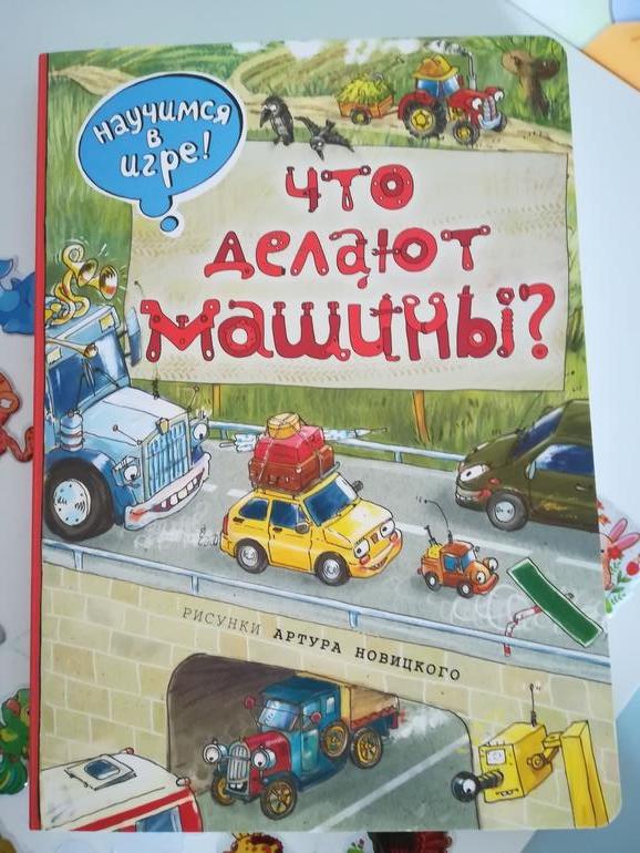 "Что делают машины?" - эту книгу сын получил в подарок на 2 года. Из всех "глазелок" она самая любимая, книга от Клевера ему рановата конечно :