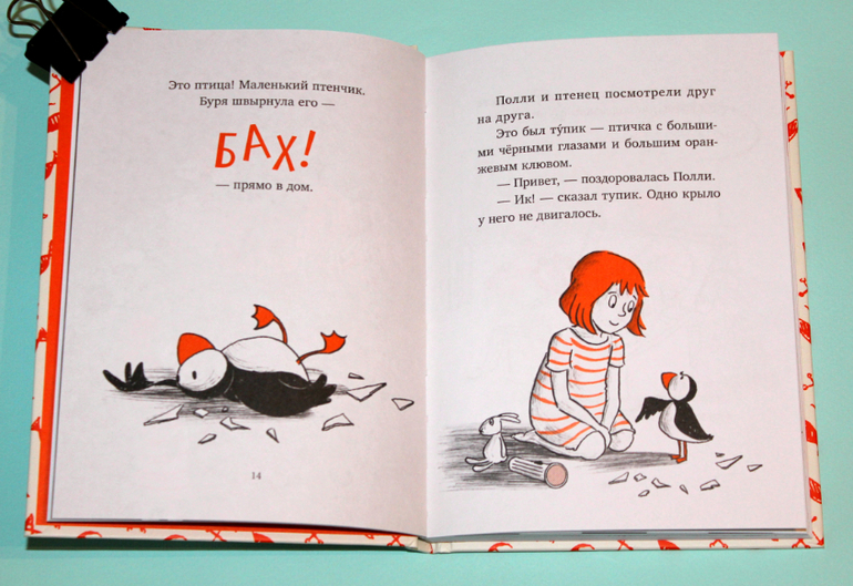 В первой книге девочка Полли знакомится с птичкой Тупиком. Он пострадал во время бури, и девочка лечит его, кормит, заботится. За время, пока птичка выздоравливала, они с Полли настолько сдружились, что не расставались ни на минуту. Как же им весело было вместе! Они кушали, играли, веселились, даже спали рядом, только Нейл спал в коробке из-под чая, рядом с кроватью Полли. И представляете, как трудно было им расставаться. Когда тупик улетел со своей стаей, Полли охватила тоска. Ничто не могло её порадовать, ни что не доставляло радости. А плюшевый тупик, которого подарила мама, только раздражал.