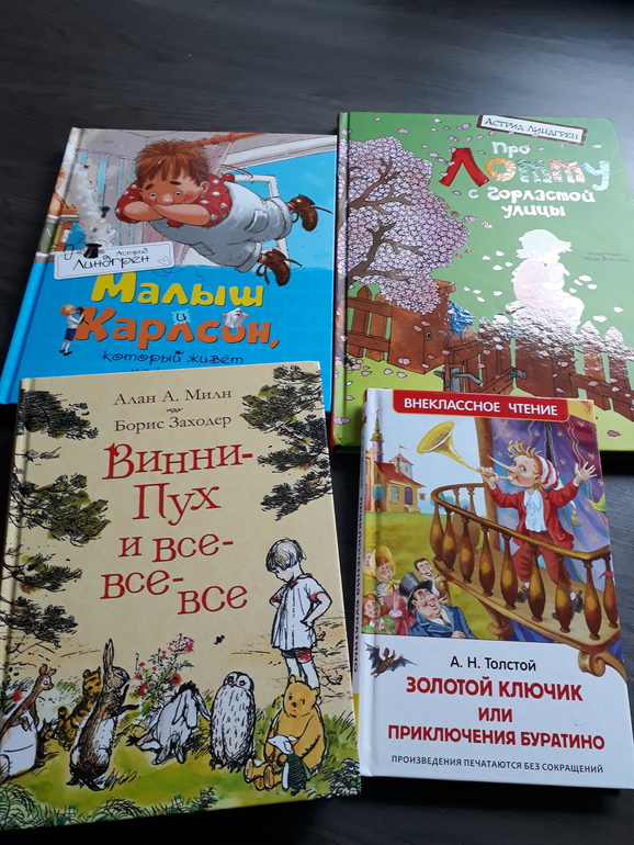 Из тяжеловесные не пошёл только Карлсон. Мало картинок)) А вот Винни-пух, приключение Буратино и Лотта полюбились! После Винни-пуха сын отправился в экспедицию, после Лотты решил проверить, сможет ли он на велосипеде без рук (улетел в кусты с криком "Получилось"). Буратино: сначала боялся Карабаса, но все время спрашивал, "что же там дальше, пойдем почитаем". В общем, больших произведений мама больше не избегает и не боится)))