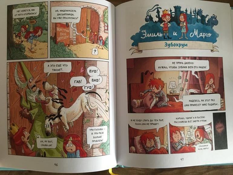 Целый месяц Надя читала комиксы «Эмиль и Марго. Монстрам вход воспрещён», Дидье Энн. Читала, переживала, смеялась. Я решила узнать ее мнение, что понравилось. Записано со слов ребёнка: