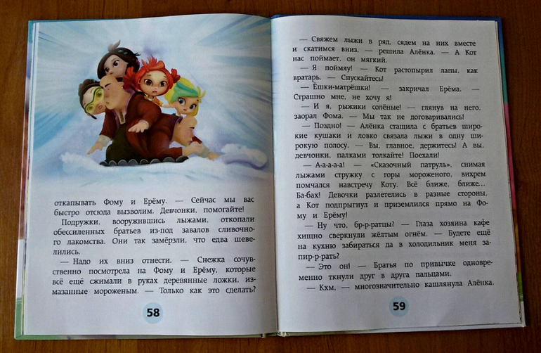 Дочка большая фанатка мультфильма про девочек из "Сказочного патруля". У нас есть куклы в виде главных персонажей, с которыми она играет. Также мы собираем пазлы с картинками из мультика. Дочка даже встала на скейт, чтобы быть как Аленка и у нее неплохо получается на нем кататься. А теперь мы добрались и до книг. Не знаю, есть ли серия про мороженое в мультике, я особо не отслеживаю, а в тех, что я смотрела, он мне не попадался.