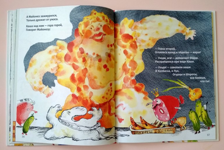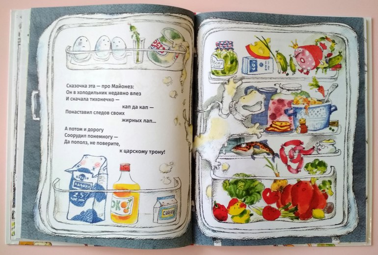 Да там один национальный колорит на самом деле - и щи, и солёные огурцы (хотя это и в других странах есть, но не в таком почёте и какие-то они сладкие слишком), ну каша? Кто, ну кто хранит кашу в холодильнике?! Её если какой экзот и сварит в Европе, там овсяную какую-нибудь, так сразу и съест, а не так, чтобы холодильник в ней измазать ))) Я много читаю дочке и так уже устала от переводов, что стихотворных, что прозаических - какие-то они в основном очень нескладные, за очень редкими исключениями. А такой лёгкий детский язык для младшего возраста с длинной историей (действительно почему 6 лет то?!) только у Чуковского и встретишь пожалуй