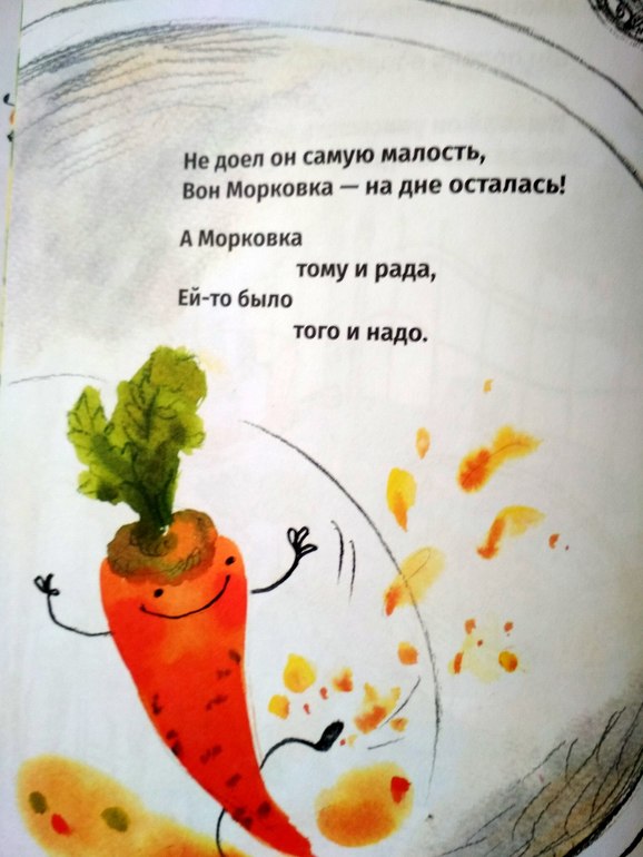 Но ее поймали, сварили, она попала в тарелку к мальчику, но все опять закончилось хорошо. Ну по крайне мере для Морковки.