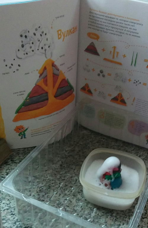Пройдя лабиринт с вулканом и воодушевившись пластилиновым, мы решили сделать свой вариант, с огнедышащей лавой)