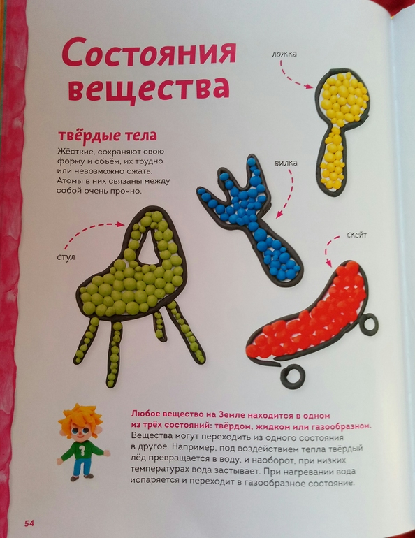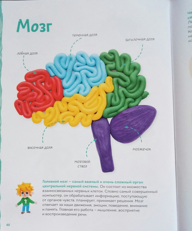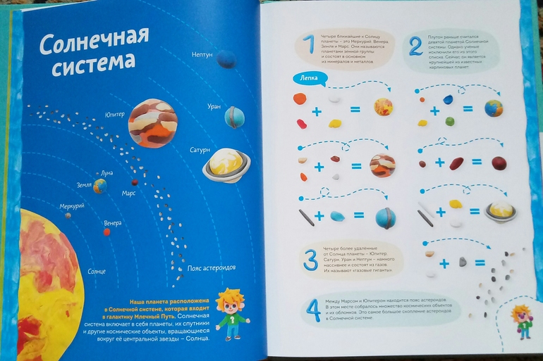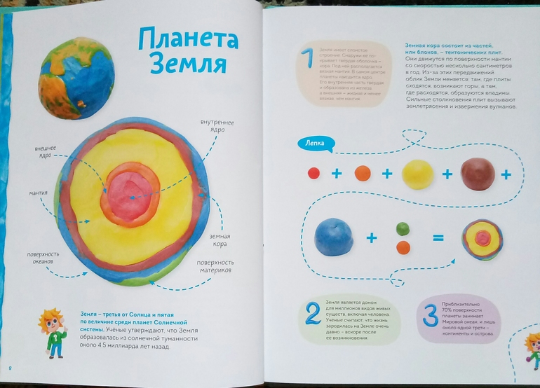 Пластилиновая лаборатория Чевостика это шедевр! Вот, честно, не люблю давать очень восторженных и эмоциональных оценок книгам, стараюсь объективно описать и показать, но вот именно эта книга у меня вызвала просто нереальный восторг, я сама ее несколько раз брала и просто листала, изучала, восхищалась! Так просто, так понятно, доходчиво и красиво! Всего 40 мастер- классов, которые показаны не скажу что прям дотошно, но очень понятно, и главное, хочется садится и делать! И каким только темы тут не представлены! Космос, транспорт, география, ботаника, химия, анатомия!