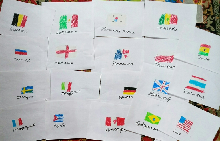 А разворот с флагами очень оценил племянник) Сначала книга появилась у нас без пластилина, и пришлось флаги рисовать)