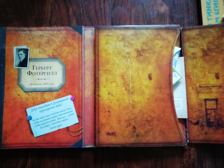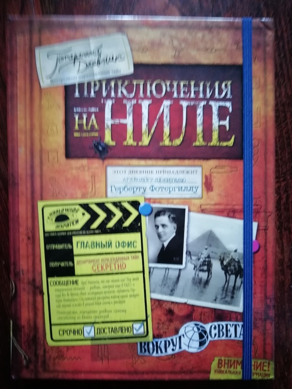 Приключения на Ниле-это книга в толстой обложке,как только Вы открываете ее, перед Вами дневник Герберта Фотергилла и конверт.