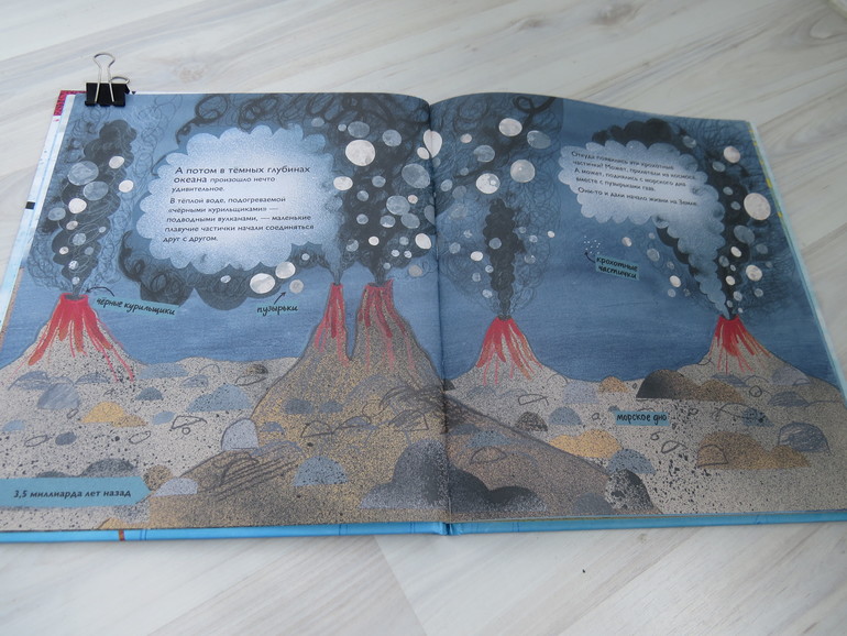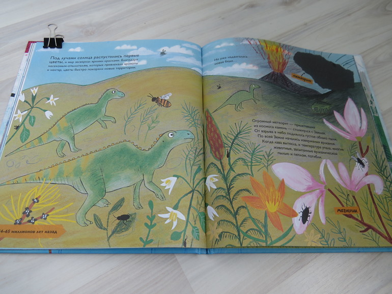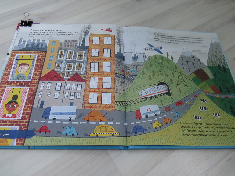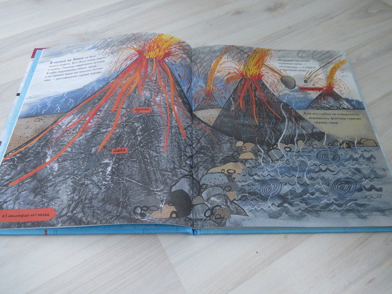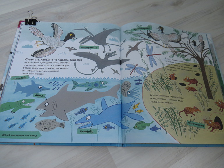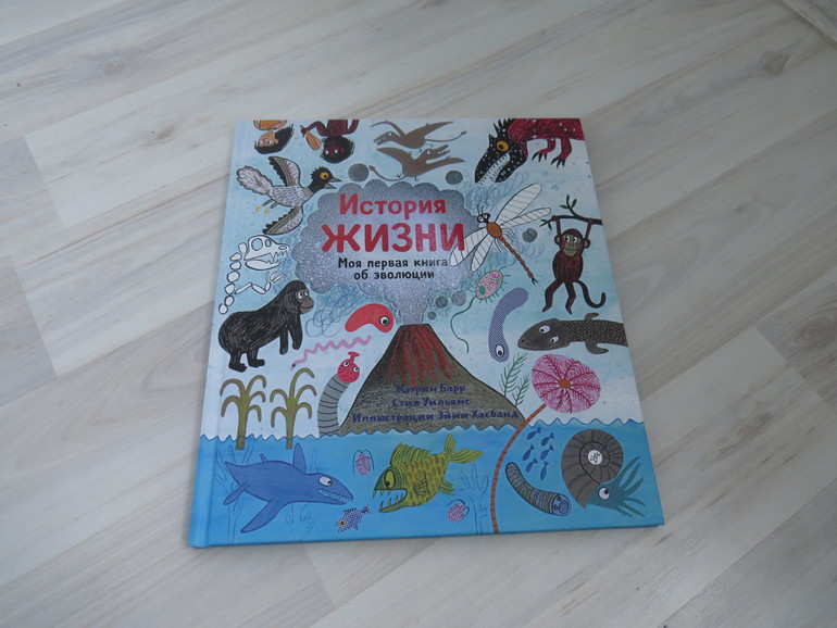 Доступным языком рассказывается история жизни от момента ее зарождения на земле до наших дней. Текста мало, немного обрывисто от периода к периоду, но для малышей вполне достаточно.