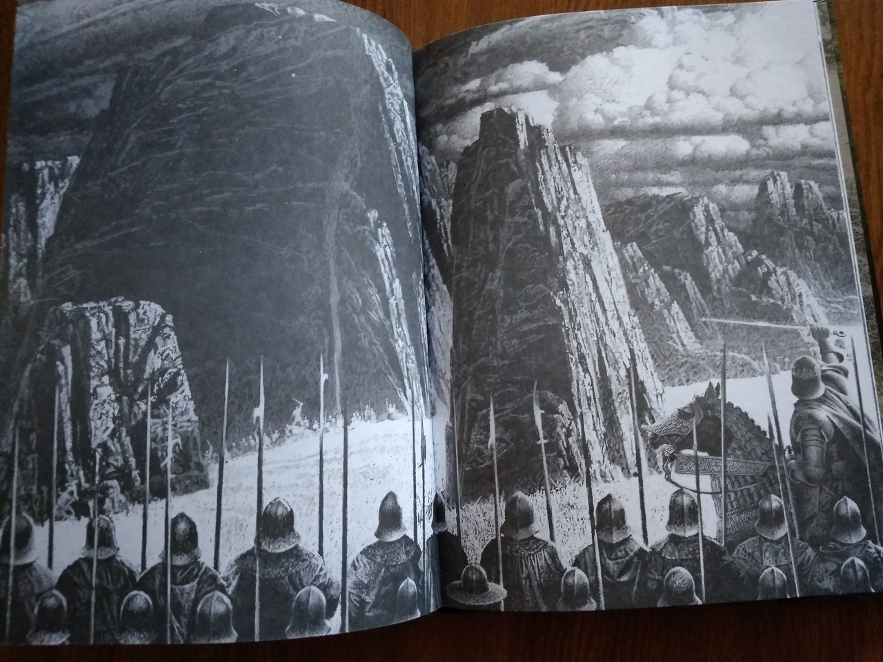 Не нравится мне только одно, можно даже сказать мягче - смущает, меня смущает в иллюстрациях узорчатость и иероглифичность скал и моря. По мне так и то и другое должны быть более "гладкого" цвета или рисунка. Вот, я покажу крупнее