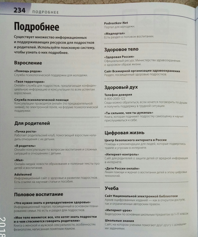 Здесь и про общение со сверстниками, с родителями, про любовь и дружбу, учебу и карьеру, про здоровья, питание, вредные привычки, первое любовное разочарование, про безопасность на улице и интернете. Ведь интернет стал огромной частью нашей жизни, и надо научиться извлекать из него нужное и полезное, избегая рисков и разочарований.