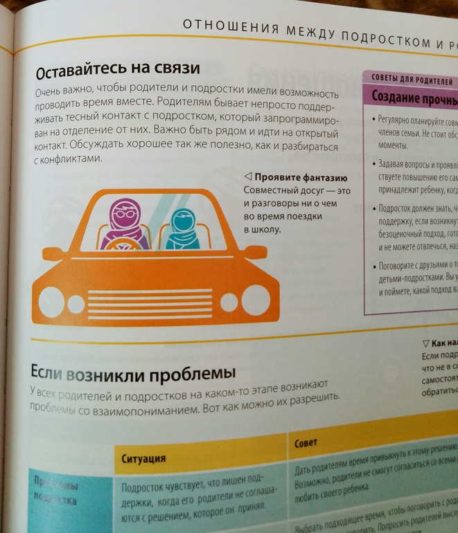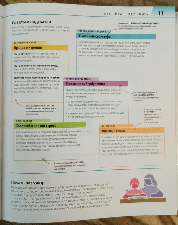 Что меня подкупило еще с анонса, что книга современная, в ней рассказывается именно о тех вопросах и проблемах, которые волнуют современных подростков! А когда я взяла ее в руки, меня просто поразило и очень порадовало само издание книги! Да, книги позиционируется именно для родителей, и чертовски приятно, что для меня, тети 30 +, и таких же как я взрослых мам и пап, книга издана так красиво, так ярко, так нескучно!