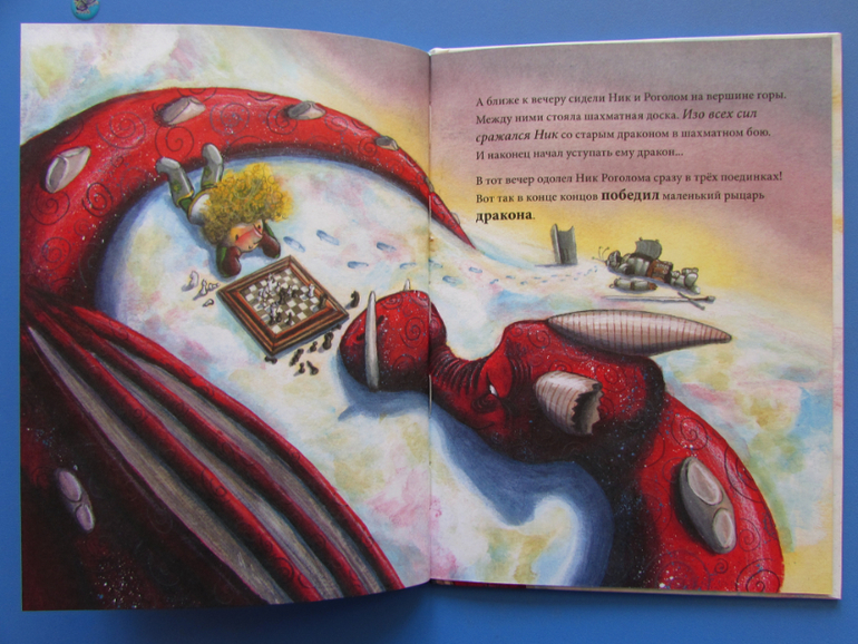 История интересная и окончание у нее очень неожиданное для меня. Ну и конечно же для сына. Сын, как наверное и все мальчишки, очень ждал битвы между рыцарем и драконом.