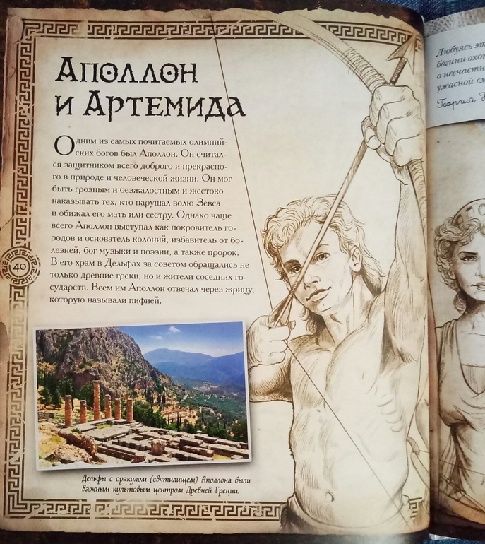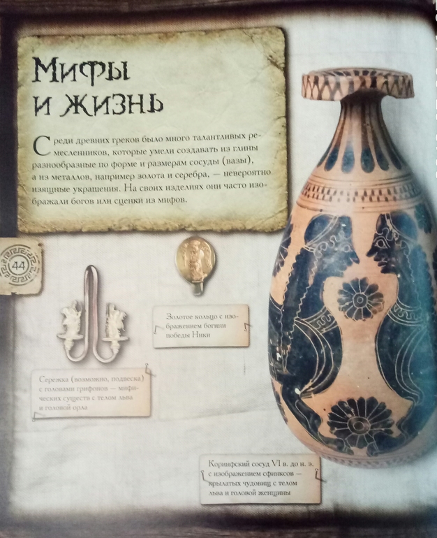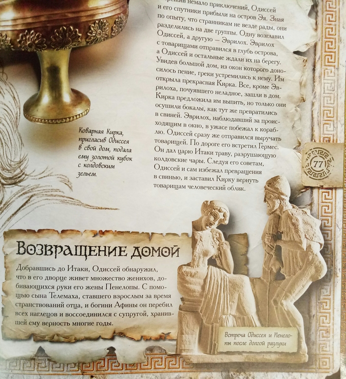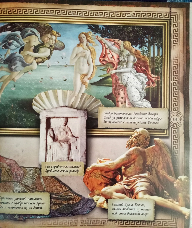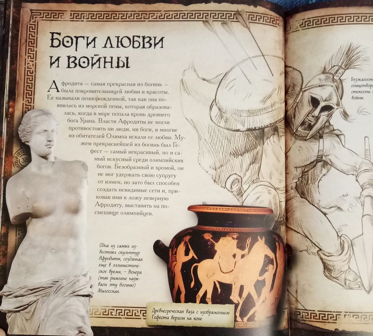 Зато в этой книге просто отличная художественная составляющая! Шикарные рисунки,старинные предметы, сделанные древнегреческими мастерами, картины, статуи, предметы обихода, на которых изображены боги или эпизоды их жизни и приключений! Очень красиво !