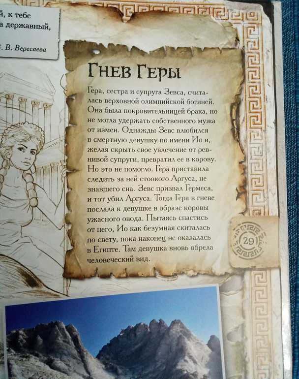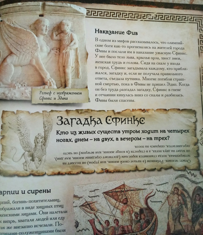 Я люблю такие книги в суперах, они добавляют эффектности, а при желании можно и снять, рисунок на обложке совпадает с супером. Смотрела я нее давно, мифы меня притягивают, но махаон же нигде не посмотришь толком, и я все сомневалась. Но после конкурса Ученик года у меня развязались руки, и я решила, такого рода литература лишней не будет) Ну что я хочу сказать, книга внутри меня поразила и порадовала ! Это конечно, не полные тексты мифов, это небольшие зарисовки, рассказы про главных героев и действующих лиц мифов древней Греции, кратно, но достаточно содержательно и понятно, конечно, не так увлекательно, как в книге Когда боги были детьми, но и не занудно и не заумно)