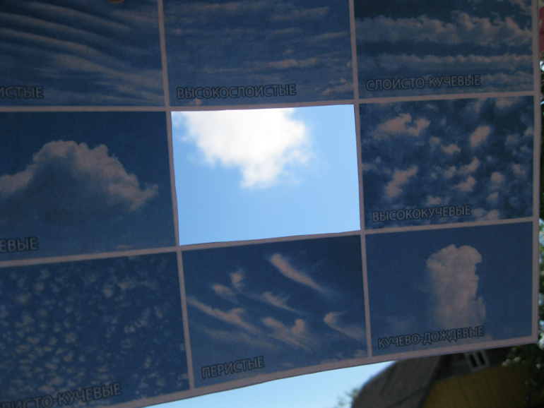 Виды облаков мы запомнили пока не все, но то, что кучевые - наши любимые, это точно! Удивительные, ватные, образующие замысловатые фигуры на небе...