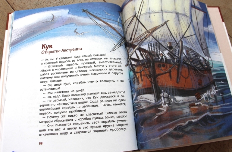 Мы Чевостика очень любим и прочитаны не единожды все книги. Но в том-то и прелесть этой серии, что интересно снова перечитывать и снова. Я нарочно предложила именно его взять с собой, так как отдельные небольшие рассказы с большим смыслом и статусом реальной истории подходят как нельзя лучше, если планируешь беседовать с ребенком. От художественной книги есть риск не оторвать его. А тут великие открытия, мореплавания, корабли.