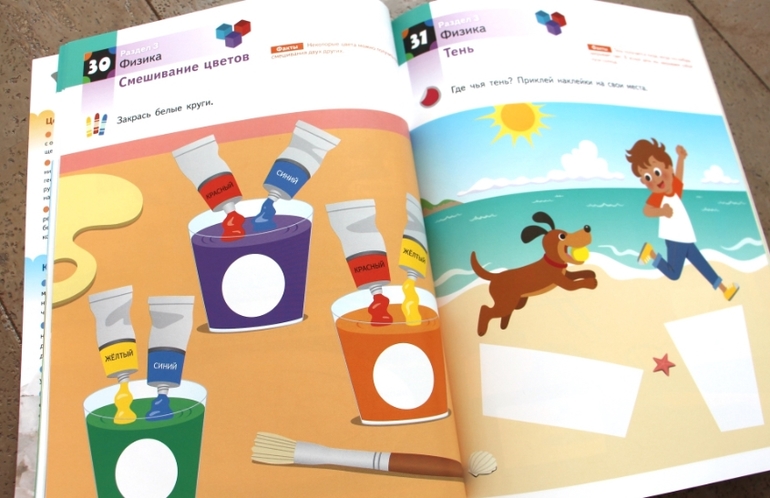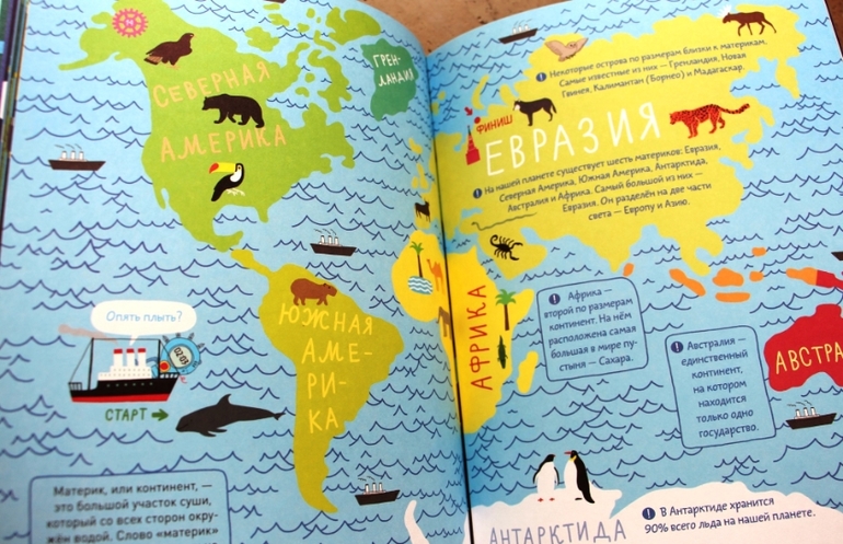 Тетрадка отличная именно тем, что кроме развлечения несет еще и весомую познавательную составляющую. На каждой странице по несколько фактов короткие, интересные и понятные. Чевостик узнает про реки, вулканы, пещеры, облака, ледовитый океан, города, звезды и планеты, материки и даже про устройство скелета. Всего не перечислишь!