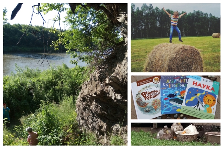 Так вот мое мнение: не надо расстраиваться, что ваша дача не на лазурном берегу, не обязательно даже заранее исследовать окрестности. Самое важное самому научиться радоваться вслух и по-детски всему окружающему. Мы просто пошли (точнее полезли по кустам) вдоль берега нашей небольшой реки Инюшки, нашли пещеру (это, конечно, для детей пещера, а на самом деле яма в обрывистом берегу), нашли заросли ежевики с красивыми цветами, источник, лягушку, тропу на верх, там заблудилась я немного, вышли к рельсам (тут была лекция, что делать, когда заблудишься), посчитали вагоны товарника и с другой стороны вернулись на дачу.