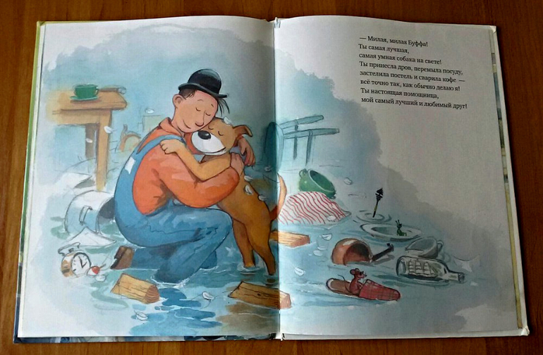 Как же Буффе повезло с хозяином. Мулле Мек не только мастер на все руки, но еще и добрый, отзывчивый человек. Он понял, что Буффа хотела его порадовать и не стал ее ругать. А вот как они с этим потопом и бардаком разбирались, автор благоразумно умолчал.