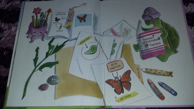 Книги очень красочные, Прорисовано множество деталей . Мне очень нравятся ее дневники исследований, так забавно нарисованы. А черепашка Альфред все время хочет есть)
