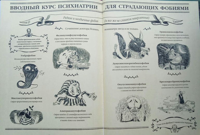 Да, и еще в конце есть несколько видов фобий,только ночью на всякий случай не читайте) нет,не потому что будет ужасно страшно, и вы всех перебудите, а потому что будете смеяться, и тогда точно всех перебудите)