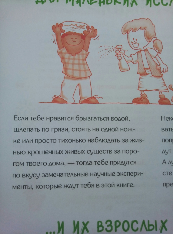 да и фраза А давай отправимся в научную экспедицию вызовет восторг у трехлетки, но скептическую улыбку у 10- летки...вообще в предисловии написано, что книга для тех, кому нравится брызгаться водой, шлепать по грязи, следить за насекомыми , а разве бывает по другому??)