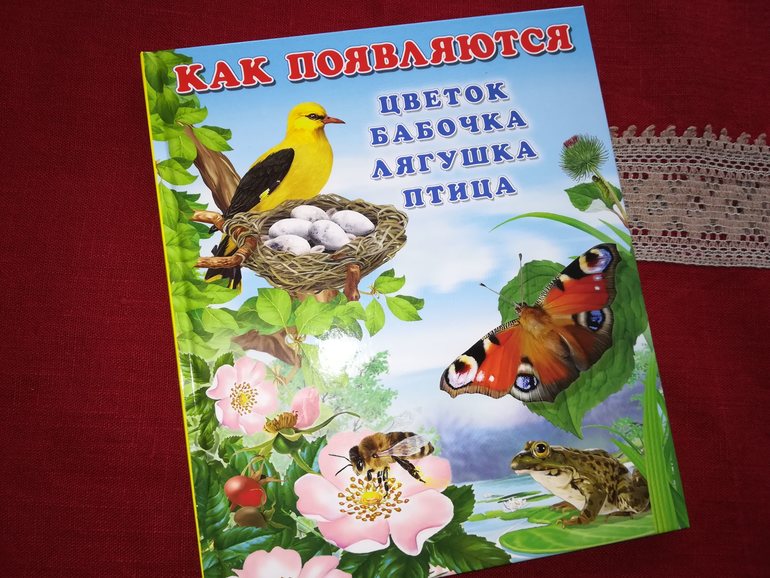 Как появляются цветок, бабочка, лягушка, птица. Книга того же автора, что и Приключения котёнка, зайчонка. Но рисунки небо и земля! Здесь они в «лучших» компьютерных традициях Профпресса, хотя издательство другое. Но текст очень грамотно и доступно изложен. Моему племяннику 5 лет понравилось.
