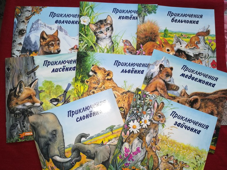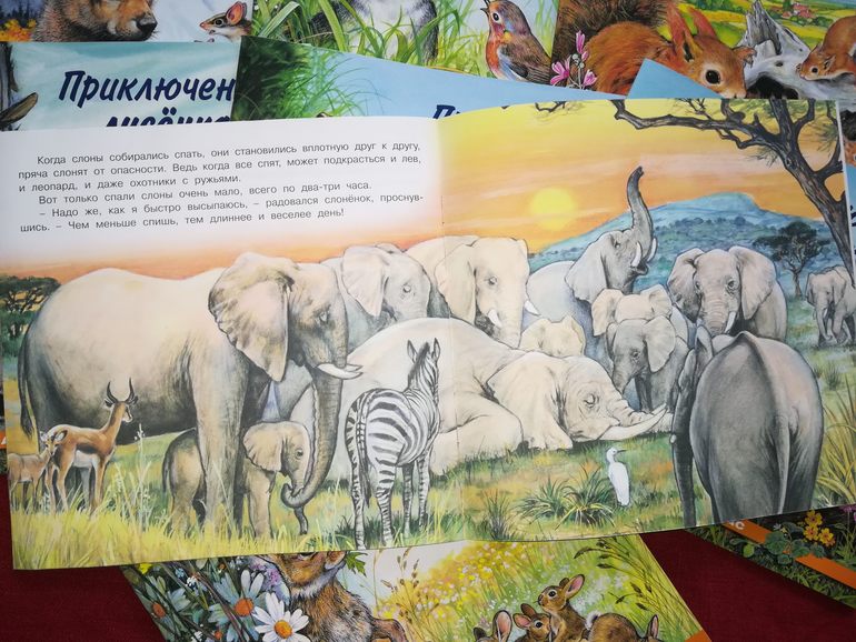 Познавательная серия о приключениях животных. Очень красивые иллюстрации, интересное содержание, как дитеныш познает мир, взрослеет, находит свою пару. В книге про слоненка несоответствие текста иллюстрации, видимо издатели берегут психику детей, так как слониха там явно не уснула.