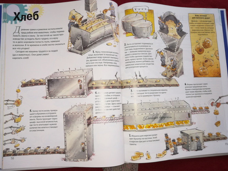 Билл Слевин Превращения. Из чего делаются привычные вещи издательтва Питер. Для мальчиков считаю маст хэв! Такая облегчённая версия мифовской Как все устроено) Но нет ничего идеального( Тонкая бумага и специфическим получился раздел про пищу, наряду с производством молока, хлеба, сахара и т. д. поясняется процесс изготовления чипсов, кока-колы и прочей бяки. Это выглядит лишнем в этой книге.