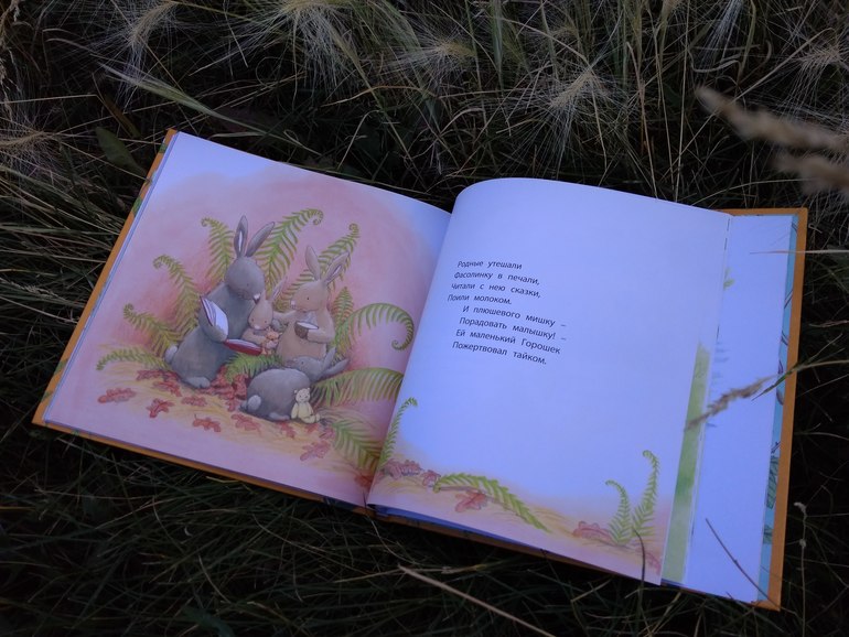 И история в стихах как раз рассказывает детям, как малышка-крольчонок Фасолинка научилась без него обходиться