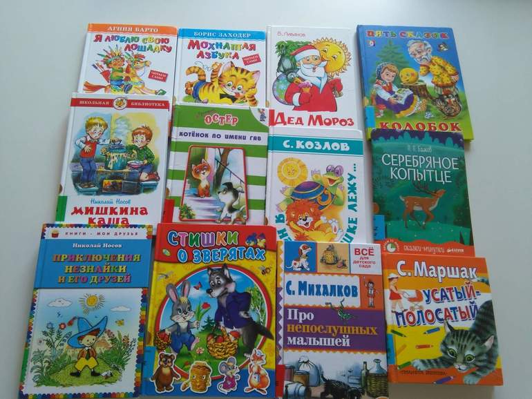 сегодня ходила с ребенком ,помогал мне делать фото и говорил ,мама это же моя книжка и эта тоже..!:) Стараюсь создать "базовую" библиотеку. Есть Барто,Михалков,Чуковский ,Маршак,Носов,народные сказки несколько сборников