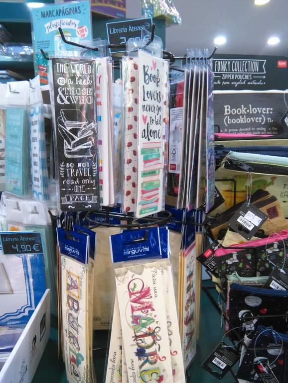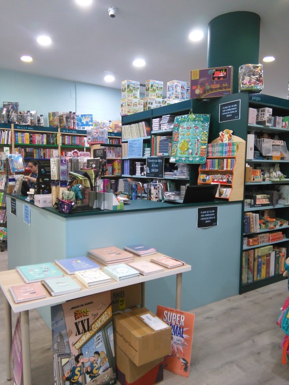 С фоторепортажем мне не очень повезло,т.к период отпусков ...в Испании в августе вообще ВСЕ закрыто и гвоздем забито...сегодня работала какая-то новенькая девушка и я побоялась просить разрешения на "демонстративную" съемку фотоаппаратом ,подумав ,что не поймет на какой такой блог в России мне нужны фото этого малюсенького магазина :))))) Снимали на телефон.Что мне нравится в наших магазинах,что тут нет длинных рядов с книгами, с классикой и "серьезной" литературой ,тут прямо праздник сплошной , мне нравится ,что тут все ярко ,куча игр,игрушек,всякой "милоты"..ребенку там очень нравится и конечно в таком магазине не надо уговаривать его что-то купить почитать.Это касса