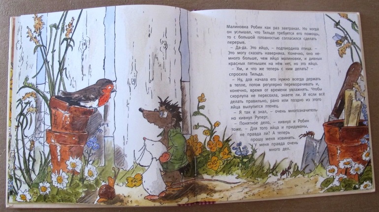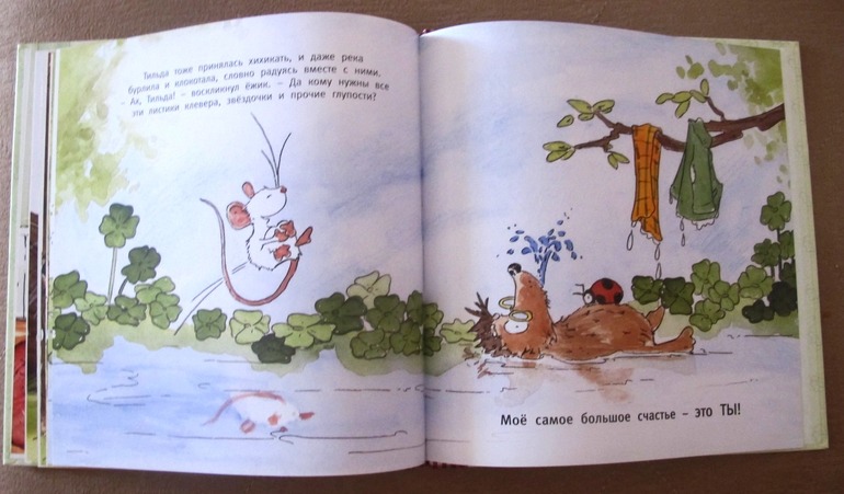 Главная героиня всех книг - Тильда Яблочное сердечко - белая церковная мышка, симпатичная и дружелюбная, которая всегда помогает своим друзьям, когда они оказываются в беде. Поэтому, когда у ежика Руперта выдался неудачный день («Мир полон счастья!»), он первым делом отправился к Тильде. Тильда наверняка что-нибудь придумает! И ежик не ошибся: чего только Тильда не придумала: различные приметы для того, чтобы несчастья Руперта наконец-то обернулись счастливыми случайностями. А в итоге-то оказывается, что главное счастье Руперта - это мышка Тильда, а в широком понимании такие вот прекрасные друзья, которые всегда поддержат и не дадут упасть духом!