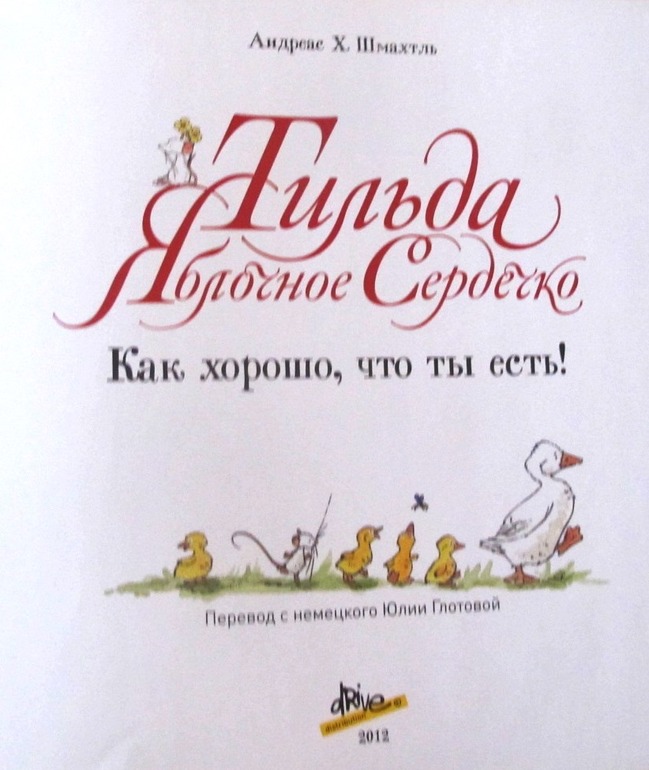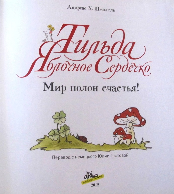 дошкольникамКогда изучены «миры» Синтии и Брайана Патерсонов, Женевьевы Юрье, Штефани Дале, Беатрис Поттер, Джил Барклем и прочих чудесных художников, чьи эфемерные иллюстрации не оставляют равнодушными даже взрослых (и заставляют коллекционировать их книги); душа начинает поиски чего-то нового… Андреас Х. Шмахтль хорошо знаком многим по его книгам про Юлиуса Одуванчика, Снофрида из Луговой долины, но сегодня, в связи с предстоящим выходом новой книги про Тильду Яблочное сердечко в издательстве «Манн, Иванов и Фербер» я хотела бы ознакомить вас, дорогие читатели этого сообщества, со своими уже ставшими букинистическими изданиями про эту мышку, которые выходили в 2012 году в издательстве «drive distribution». Судя по информации на задних крышках переплетов, в данной серии был запланирован выход 4-х книг этой серии, но, в силу каких-то причин, которые мне неизвестны, свет увидели лишь 2 издания этой серии: «Мир полон счастья» и «Как хорошо, что ты есть!» (по крайней мере, сколько я не искала, других изданий не нашла, хотя тираж был довольно внушительный - 5000 экз).