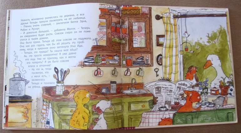 Во второй книге «Как хорошо, что ты есть!» развитие сюжета начинается с того, что каждую среду к Тильде на чай собираются друзья, и Тильда печет для них какой-нибудь вкусный пирог. Но в эту среду чаепитие чуть не отменилось из-за одной очень важной находки - яйца! Неравнодушная Тильда решает позаботиться о яйце и очень скоро из него вылупляется утенок. Все заканчивается хорошо: мама-утка находит своего потерявшегося утенка (то бишь яйцо), тепло благодарит мышку за заботу о нем, а Тильда с друзьями навещают утиное семейство. Хочется отметить, что в этой книге иллюстрации более сочные, насыщены деталями, чем в первом издании. Хочется рассматривать и рассматривать))