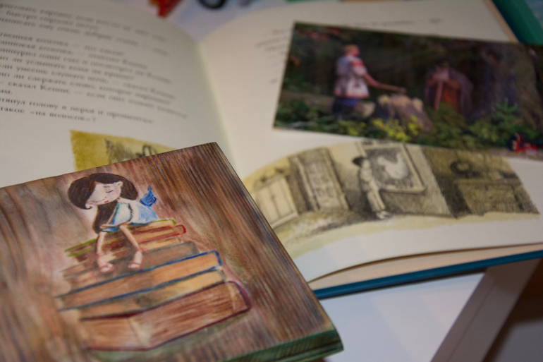 Случайных книг у меня много! Из тех, что брала, ничего о них не зная, а оказались очень моими - Однажды в зимнем городе, дети к ней очень спокойно отнеслись, а мне нравится, в руки беру и успокаиваюсь. Даша с Соней тоже ее любили. Еще Спящую красавицу в переводе Тургенева зачем-то взяла и уже три года обалдеваю от нее - просто глажу страницы и млею - мечта кинестетика ))) Она на дизайнерской бумаге "Рембрандт" и теперь я фанат бумаготерапии )))))))))