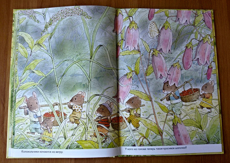 - Смотри, какая забавная у мышонка получилась шапочка из колокольчика. Как ты думаешь, что тяжелее: корзина, которую он несет или новая шапочка?