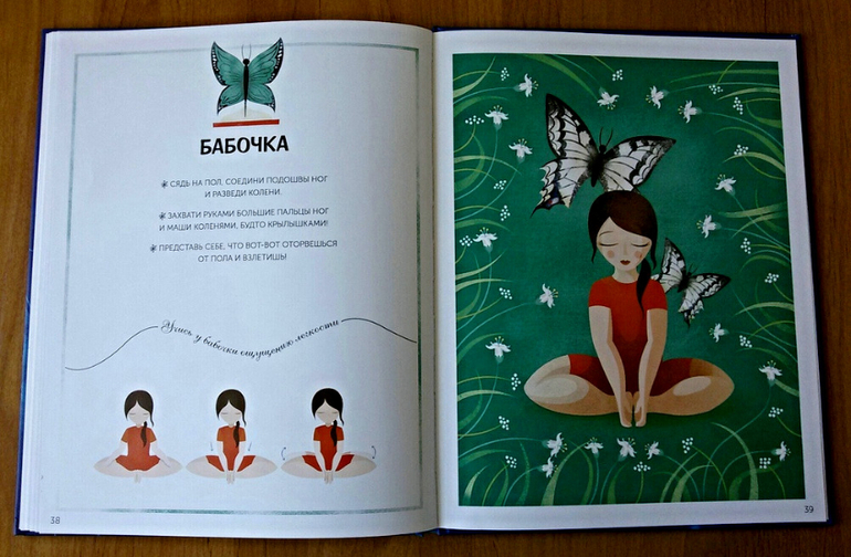Всего в книге шестнадцать асанов, есть совсем легкие, есть посложнее. Но, как показала практика, дети способны справиться со всеми, а вот многим взрослым придется попотеть над позой Черепахи. Сколько я не стараюсь, выполнить у меня ее не получается.
