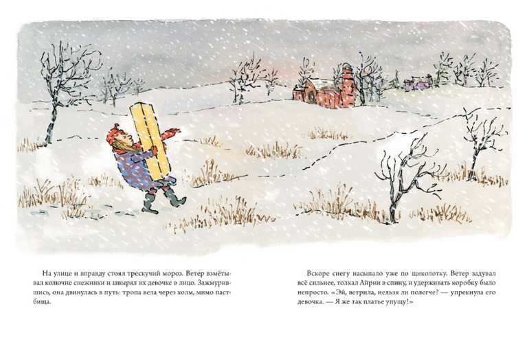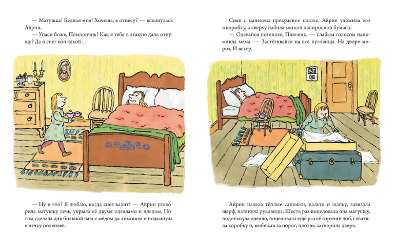 Портниха миссис Боббин много дней и ночей трудилась над бальным платьем герцогини. Миссис Боббин так устала, что, закончив работу, сразу заболела. А бал уже сегодня! Хорошо, что у нее есть ее дочка Айрин, которая всегда готова позаботится о маме. Она сама отнесет платье герцогине, несмотря на жуткий мороз и ветер.
