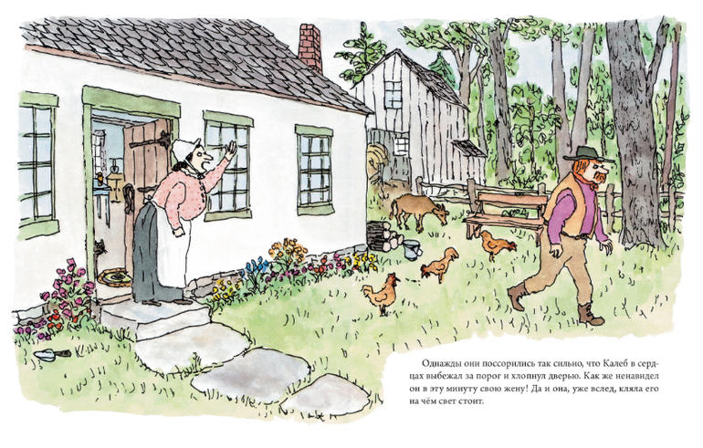 Дровосек Калеб и ткачиха Кейт очень любят друг друга, но часто ссорятся, зато, правда, потом быстро мирятся. И вот однажды, посреди ссоры Калеб так разозлился, что, хлопнув дверью, ушел из дома. Как это обычно у них и бывало, уже совсем скоро Калеб забыл на что так злился, соскучился по Кейт и решил возвращаться домой, но перед этим ему захотелось чуть-чуть прикорнуть на полянке. И все бы кончилось хорошо, если бы проходящая мимо ведьма не решила превратить спящего Калеба в собаку. Что же теперь делать бедняге Калебу? Как вернуться к своей ненаглядной Кейт?