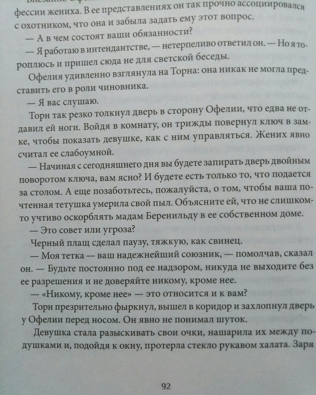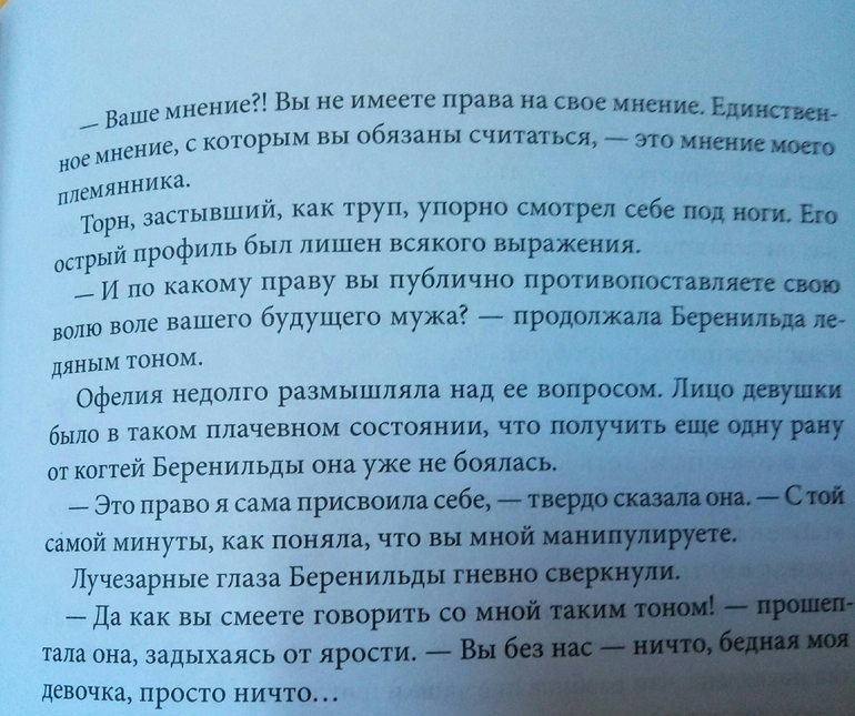 Очень много в книг интриг и тайн, настоящий высший свет! Вообщем, я вторую часть очень жду! но, но немножко побубню.. в некоторых местах лично мне не очень понравился перевод, не знаю, как в оригинале но "она судорожно стискивала его длинное худое тело" и "Торн ,застывший, как труп" мне резануло слух..