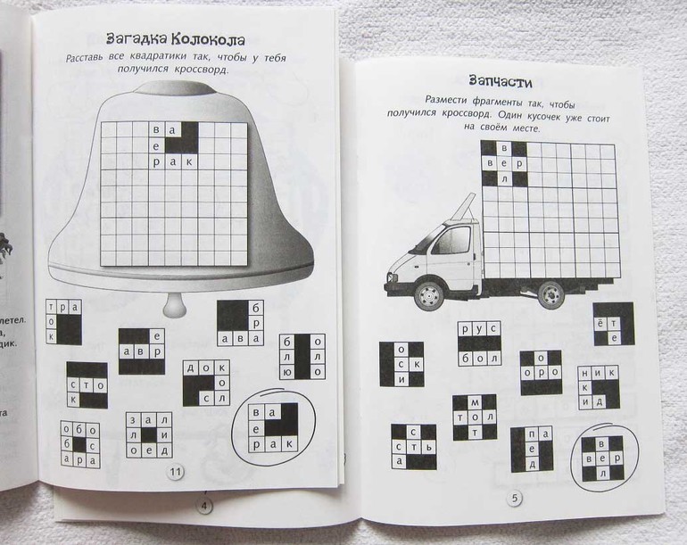Еще одно отличное и далеко не легкое задание - разместить фрагменты так, чтобы получился кроссворд