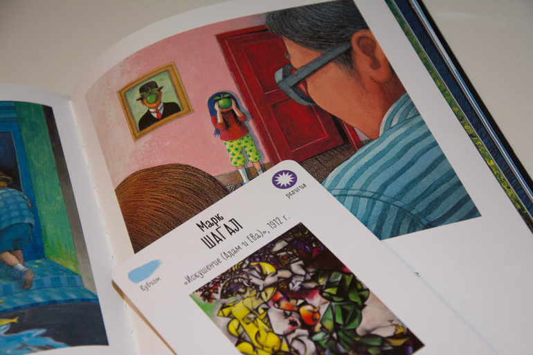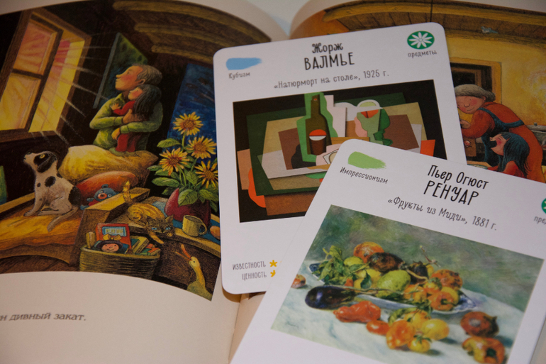 Я купила ее, когда ее на нее практически не было отзывов! Потому что люблю живопись, и книги про живопись, особенно написанные не сухим языком, а таким, что интересно читать и взрослым и детям! В поиске таких книг! И игра есть такая) Правда, с правилами еще не разбирались, все ждет своего часа.