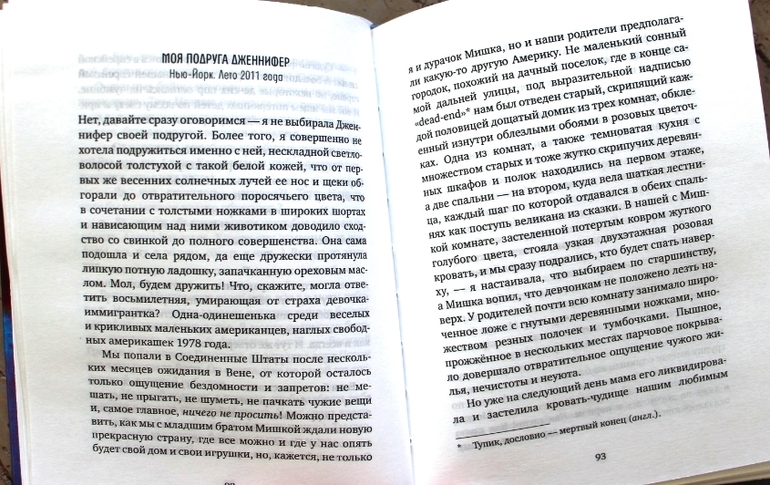 Мне показалось, что автор недолюбливает Россию. Оказывается для меня это важно. Но самое непростое то, что вот уже неделю после прочтения я пытаюсь сформулировать, в чем же это плохое отношение и как ни странно, но поучается, что я почти согласна с ней в этом вопросе. Только в этом вопросе. Он касается детей-сирот, системы их жизни и усыновления. А написать однозначно - за или против - я не могу, потому что это размышление из категории «кому жить, а кому нет».