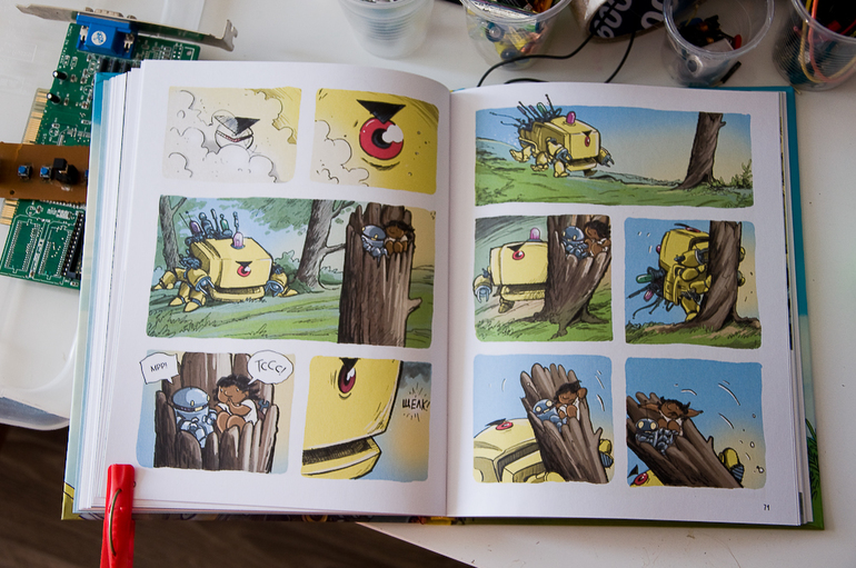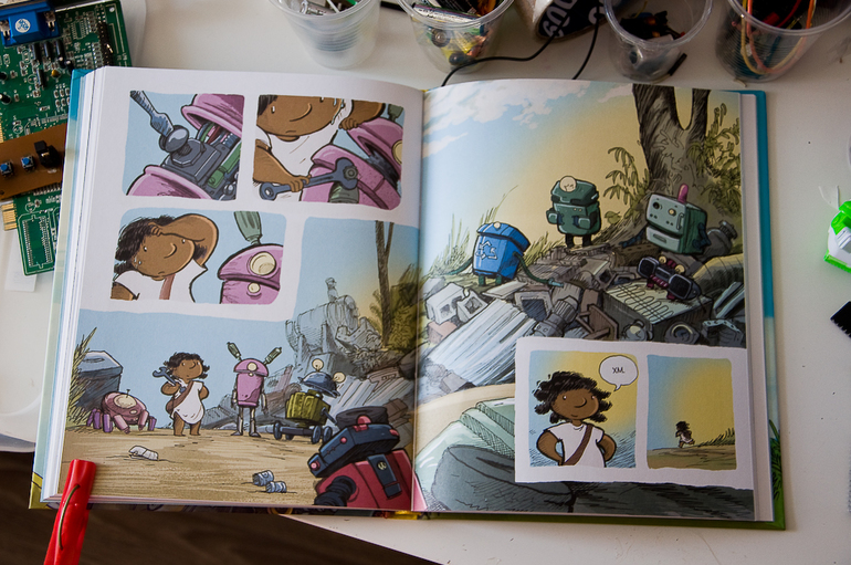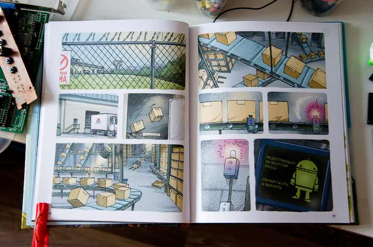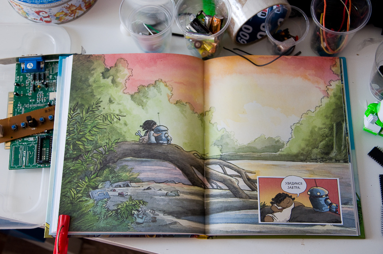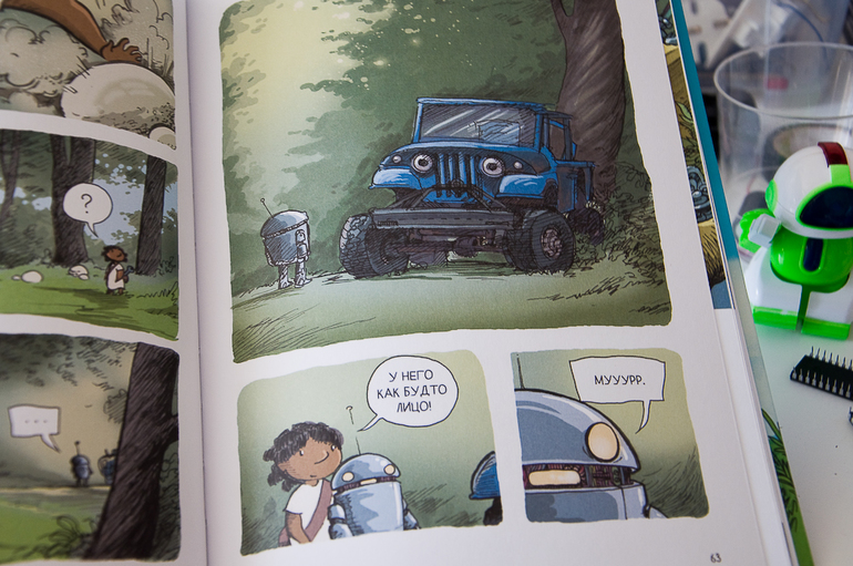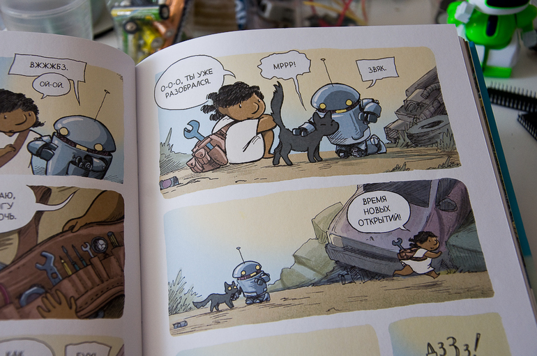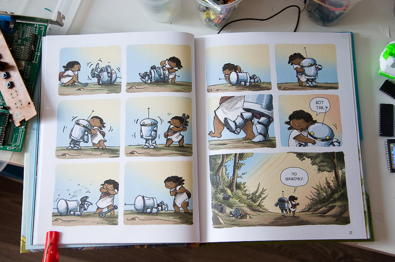 Мы открыли ее и тут же погрузились с мир, где роботы что-то естественное, обычное. А главная героиня очень похожа на Сему. она тоже любит все чинить, только чуть посмелее))