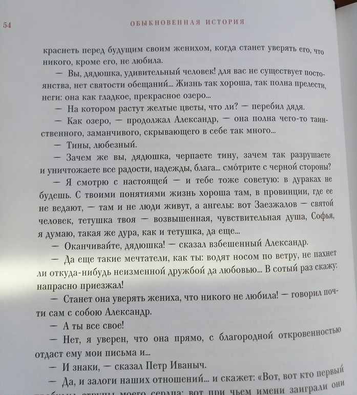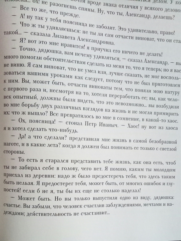 И в первую очередь хочу сказать спасибо нашему ДК и девушкам, которые агитируют на чтения классики) и еще издательству Речь за то, что они так издают классику, что руки так и тянутся взять шикарно изданную книгу и прочитать! Гончарова я не читала со школы, и естественно , в школе читала всем известного Обломова. Вообще фамилия Обломов и термин Обломовщина, мне кажется, известна всем, даже тем, кто его не читал. Мне роман почему то запомнился этакой нудятиной, тоской, и вялотекущими попытками Штольца вытащить Обломова из его трясины ничегонеделанья.. Поэтому и к этому роману я подступала с опасной, думаю, будет скучно, нудно, брошу, я из тех, кто не домучивает книгу, если не пошла.. Там Речь столько издала, интересные бы успеть почитать) Но роман меня захватил, заинтересовал, я с огромным любопытством следила за взрослением, становлением главного героя Александра, за его отношениями с дядей, с любимыми женщинами, с мамой.. Порой я ему сочувствовала, относилась с легкой снисходительностью к его юношеским порывам, порой он меня откровенно бесил своим юношеским максимализмом, обвинениями всех и вся, но совершенно точно он не оставил меня равнодушной!