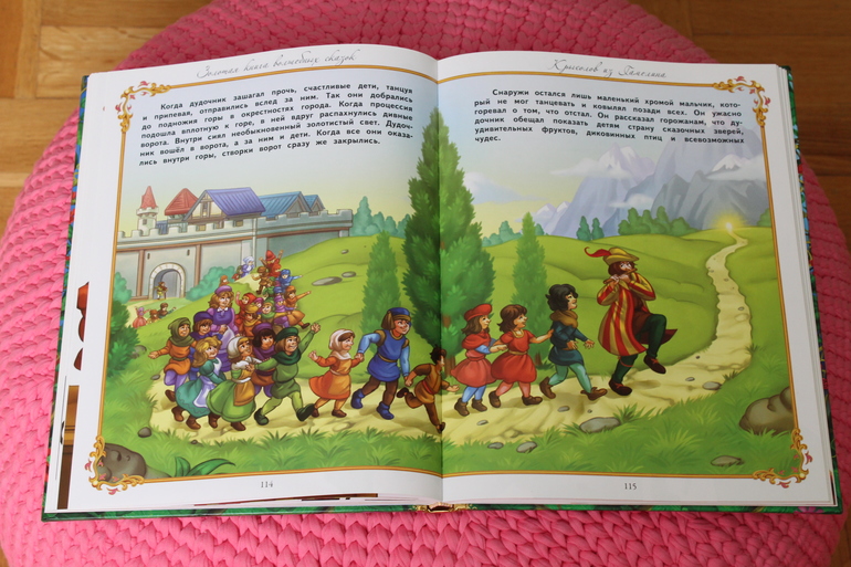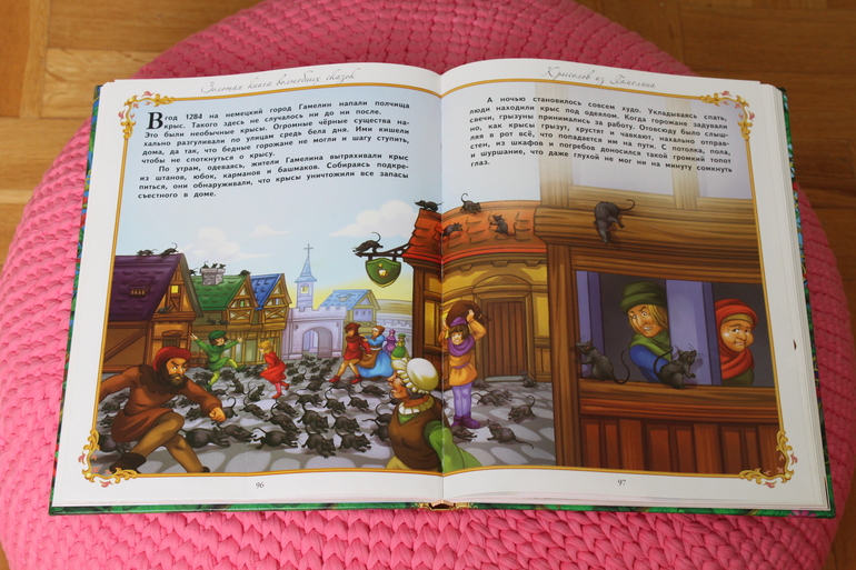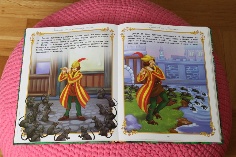 Вообще я не знаю, как эта книга попала впервые в руки Маргариты. Тем более не понимаю, почему именно "Крысолов" привлек ее больше всего из увесистого сборника сказок. Эта книга в нашу библиотеку залетела еще во времена моей беременности Марго. Мы тогда собирали реквизит для "беременной" фотосессии, и я купила этот сборник за красоту обложки и золотой корешок😂. Тогда от по-настоящему качественных детских книг я была далека, как от Луны. Но именно этот сборник муж в последствии читал перед сном моему беременному животику☺️. В общем-то, получается, с него и начался наш роман с детской литературой...