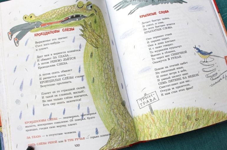 Сынок у меня любитель поумничать - он специально вычитывает какую-нибудь идиому, разбирается в ее значении и пытается вставлять в речь (конечно, пока с переменным успехом). Иногда, как в словаре, ищет значение слов, сказанных мною. А часто просто листает книгу, которая теперь постоянно живет где угодно, кроме полки.