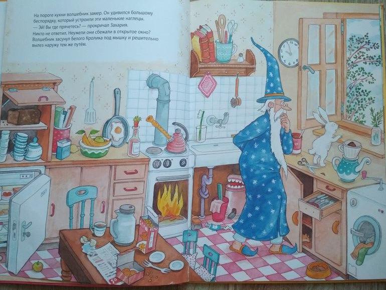 Маг Захария и его эльфы-проказники стали у нас всеобщими любимцами, даже папа пришёл в восторг от этой презабавнейшей книжки и азартно выискивал вместе с детьми всё новые и новые несуразности.